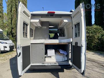 CARATTERISTICHE PRINCIPALI DI QUESTO CAMPER: Meccanica: Fiat Ducato 35 2.2 mjt 140cv Cilindrata: 2184 cm³ Cavalli: 140 cv Euro: 6e Altezza: 270 cm Larghezza: 205 cm Lunghezza: 599 cm Posti Omologati: 4 Posti Letto: 3 Nuovissimo campervan di casa madre Etrusco: CV 600 DB Plus su meccanica Fiat Ducato 140 CV, Omologato 4 posti viaggio e 3 posti letto grazie alla presenza della trasformazione in dinette. Quest'ultima super confortevole con sedili guida girevoli e tavolo con prolunga ruotabile, blocco cucina con piano cottura a due fuochi e frigorifero laterale a colonna con scomparto freezer. Caratteristica principale del veicolo: bagno e doccia in un unico ambiente separabili grazie alla parete traslabile. Comodo letto trasversale in coda con spazio sottostante per lo stivaggio. Perfetto per qualsiasi vacanza grazie al riscaldamento Combi Diesel. Prezzo di listino comprensivo di accessori e messa su strada: € 61.900 Equipaggiamenti del veicolo: - Complete Selection (Pacchetto Multimedia Compact, Finestre con cornice, Precablaggio per pannelli solari, Predisposizione per aria condizionata a tetto, Precablaggio per retrocamera, Veranda) - Paraurti anteriore verniciato in tinta - Presa USB nel binario d'illuminazione - Stufa Combi Diesel - Terzo letto in dinette - Verniciatura esterna "Expedition Grey" La Pons srl declina ogni responsabilità per eventuali involontarie incongruenze, che non rappresentano in alcun modo un impegno contrattuale. [Cod: 1098027-845]