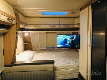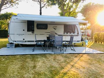 FENDT BIANCO SELECTION 515 SKM Lunghezza totale 751 cm Larghezza totale 232 cm Massa massima complessiva 1700 kg Posti letto 5 con matrimoniale + 2 castello + dinette trasformabile Immatricolazione Aprile 2020 Revisione regolare effettuata aprile 10/03/2026 Gomme Continental Premium da carico rinforzate 1000 kg nuove km 10 Telaio Al-Ko e ammortizzatori freni AAA Stabilizzatore AL-KO AKS 3004 Trailer Control AL-KO ATC Ruotino di appoggio con indicatore di carico Riscaldamento a gas Truma S 3004 Climatizzatore Dometic 1700 Piedini stazionamento Alko Big Foot Serbatoio acqua potabile 25 l ( mai utilizzato ) Serbatoio acque di scarico 24 l ( mai utilizzato ) Frigorifero colonna Slim Tower apribile da entrambi i lati 140 l. Rilevatore di fumo Piano cottura a tre fuochi con dispositivo di sicurezza, griglia in ghisa e coperture frazionabili in vetro termo-temprato ( mai usato ) Porta tv Portabici 3 THULE Impianto led automatico apertura gavoni e porte armadio Voltometro digitale rilevazione consumo 12 V. Camperizzazione con batteria 12 v. Gel 100 Am Salvavita aggiuntivo, presa 220V su lato posteriore e anteriore Zanzariera porta ingresso e tutte le finestre Tendalino THULE OMNISTOR 6300 – mt 4,50 con impianto Led Lavandini e cucina, fornello non sono mai stati usati. Ruota di scorta con supporto inox sotto telaio. Presa gas supplementare esterna con innesto rapido Moover TRUMA SX con telecomando Presa esterna TV/SAT 12 V./ 220 V. Antenna TV omnidirezionale Breti Copri materassi permeabili traspiranti su misura Trapunte x tutti i letti di mezza stagione in tono colore Fendt Bianco fatte a misura Usata in modo maniacale con adeguate protezioni e sempre rimessata al coperto con scrupolose attenzioni di pulizia interne ed esterne e manutenzione ordinaria. Protezioni finestre termiche su misura Mikitex. Ombreggianti Mikitex frontale e laterali per tendalino Thule. Modem wi-fi + videocamera Come nuova, disponibili altre foto ed' è gradita la non perdita di tempo. grazie