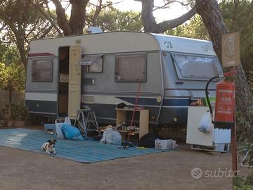 Attualmente rimessata in un campeggio a Cupra Marittima AP. non ha la revisione. Ha 4 posti letto, due in un matrimoniale e due trasformando la dinette posteriore. Completa di veranda e vari accessori.