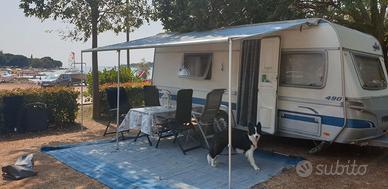 VENDO ROULOTTE FENDT SAPHIR 490 TKM Ideale per famiglie (5 posti letto) – Usato ma in buono stato Vendo caravan Fendt Saphir 490 tkm del 2007, mantenuta bene e sempre tagliandata. Revisione gen. 27 Caratteristiche : - 5 Posti Letto :1 dinette matrimoniale, 1 dinette singola e 1 letto a castello (3 posti), con vano contenitore. -Cucina e Riscaldamento: Piano cottura a gas, stufa Truman e frigorifero trivalente - Bagno: WC a cassetta Thetford, e lavandino (no doccia). rifiniture in legno. -Impiantistica: boiler per acqua calda e serbatoio acque chiare camperizzato. Predisposizione impianto TV già presente. -Struttura: Telaio AL-KO con stabilizzatore. Gomme nuove. Accessori Inclusi: Mover Truma, con impianto 12 volt separato dal resto dell'impianto. tendalino Caravanstore Fiamma Portabici a 2 posti Dimensioni e Pesi: Peso: 1360 kg a pieno carico Lunghezza (compreso timone): 6,98 m Larghezza: 2,20 m Altezza: 2,46 m Prezzo: € 10.000 (Trattabili) Luogo: Rho (MI)