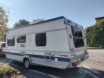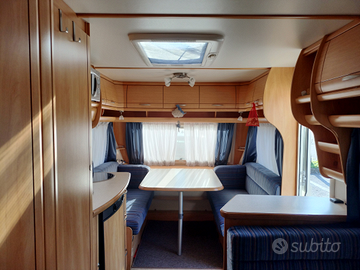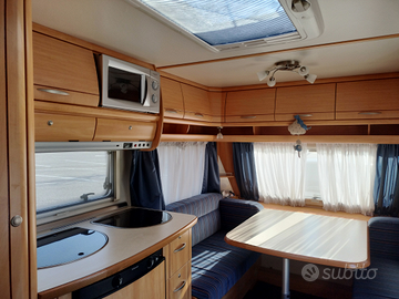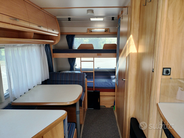 Vendo roulotte 5 posti letto, 2 dinette, bagno, stufa, boiler, forno a microonde (di serie), no mover no clima, peso 1360 kg, modello 2008 unico proprietario, rimessata al coperto. Revisione novembre 26, pneumatici 2023. Pronta a viaggiare, ottima anche per campeggio invernale.