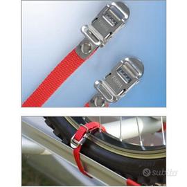 2 cinghie con fibbie per fissare la ruota al binario supplementare o come ricambio.