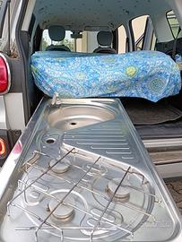 Fiat 500 L Living 7 posti camperizzata. 1.3 Mjet Diesel 95 CV euro 6 ( senza AD-Blue) del 01/ 2016 con 113.000 km, secondo proprietario, ma presa aziendale. Allestimento normale: full optional con 8 airbag, clima, specchi e vetri elettrici, computer di bordo, piccolo frigo nel cruscotto, ruota di scorta, 5+ 2 posti estraibili posteriori. Consumi ridotti, catena e non cinghia. Allestimento camperizzato X2 persone con: barre tetto, baule tetto che lascia spazio accanto per eventuale canoa o sup...etc etc; gancio di traino con portabici 2 posti, piano cucina estraibile con lavandino, serbatoio acqua con pompa 12v e tanica per scarico, piano cottura tre fuochi con attacco e riduttore per bombola GPL ( non compresa), base letto con materasso per 2.Il kit camperizzazione è ovviamente amovibile. Quando non utilizzato è una normale 5+2 posti comoda in città e per i lunghi viaggi. Meccanicamente ok,sempre tagliandata regolare con l' ultimo fatto recentissimo. Gomme nuove, appena fatta frizione, bollo pagato e revisione fatta.Alcuni segni carrozzeria da parcheggio. Prezzo euro 10.000 info.Simone 3476880651