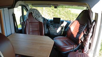 Tappezzerie rifatte in ecopelle di tutti i sedili., Compresi gli sportelli delle armadiature rivestite e imbottite,