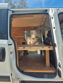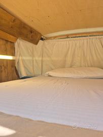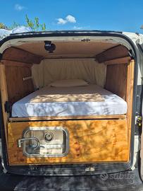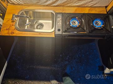 ZONA NOTTE: Letto matrimoniale 120 cm di larghezza Struttura modulare divisa in due parti: una parte fissa (zona cucina/frigo) una parte mobile per configurazione giorno/notte Materasso incluso Possibilità di viaggiare con letto montato (in base alla corporatura) ISOLAMENTO E RIVESTIMENTI: Isolamento completo con armaflex 25 mm Rivestimento interno in legno Buon comfort termico in tutte le stagioni IMPIANTO ELETTRICO (AUTONOMO): Pannello solare 130W Batteria servizi AGM 140Ah marca Electronicx Centralina con: 3 prese 12V 2 prese USB Illuminazione interna LED molto luminosa (laterale + centrale) con 3 tonalità selezionabili Predisposizione per accessori 12V (ventilatore, ecc.) CUCINA COMPLETA: Lavello inox con rubinetto pieghevole Pompa acqua con pressostato + doppio comando (rubinetto + interruttore) Tanica acqua 50 litri Impianto acqua completo di carico e scarico Doccetta esterna con tubo 5 metri Fornello a gas 2 fuochi Cucina integrata con mensola ribaltabile, pratica per aumentare lo spazio quando serve Struttura stabile e ben integrata FRIGORIFERO: Frigo a compressore VEVOR SH-CF35 da 35L Montato su guida estraibile Basso consumo, ideale per autonomia off-grid Tende/oscuranti su misura per privacy completa Struttura robusta e stabile durante la guida Ottima autonomia energetica grazie a pannello solare e batteria servizi, perfetto per utilizzo off-grid (in base ai consumi)