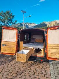 Vendo Doblò maxi 1.9 (immatricolato autocarro, passo lungo) camperizzato interamente in legno su misura con finestra, divano letto con materasso, gavone spazioso, piccola mensola e cassetto a scomparsa. Luci interne da fissare e pavimento in legno. Tutti gli elementi dell'arredamento sono rimovibili in caso di necessità.