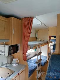 Camper a sei posti ben tenuto e pronto a partire, nessun lavoro da fare. Ideale per viaggiare subito in totale autonomia e comfort. Dotazioni principali: Telecamera posteriore per manovre sicure Doppio pavimento artigianale per un eccellente isolamento termico in inverno Illuminazione interna ed esterna completamente a LED Pannello solare per maggiore autonomia energetica Ammortizzatori ad aria per una guida più stabile e confortevole Copri cabina Frigo trivalente (gas, 12V, 220V) Riscaldamento Trumatic Acqua calda Televisore e microonde Doppie chiavi Specchi elettrici Scaletta cellula automatica Gancio traino già omologato a libretto Portamoto posteriore (sostituita pedana) / utilizzabile anche come portabici Prezzo trattabile
