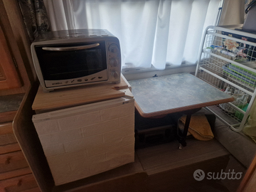 Frigo trivalente con freezer, funziona sia a 12v che a gas che a 220 volt ed altro freezer posto di fronte con fornetto