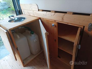 Furgoncino H1L1 camperizzato, mezzo ex carabinieri 2.0 benzina 110cv GPL, anno 2003, iscritto ASI con crs a libretto, immatricolato autovettura 9 posti, riverniciato 2022 bianco lasciando solo in blu la parte bassa e gli interni, km 64000 usato giornalmente, impianto GPL BRC sequenziale installato nel 2022, climatizzatore, lungo 4,78 si guida e si parcheggia come un auto, personalmente lo utilizzo con grande versatilità come auto di tutti i giorni come camper e all'occorrenza anche per trasportare oggetti ingombranti. Camperizzazione 2022, completamente amovibile senza uso di arnesi quindi perfettamente legale, tutta in legno di abete lamellare, batteria servizi 100ah agm montata con parallelatore, frigo a compressore tipo dometic, letto 135x190 con materasso di ottima qualità ci si dorme comodi in due, H interna 160, portapotty mai utilizzato, ampissimo vano bagagli. Sedili originali disponibili. Si vende per ampliamento famiglia e passaggio a mezzo più grande.