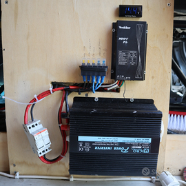 Impianto elettrico con luci e prese alimentate dal pannello solare posto sopra il mezzo.