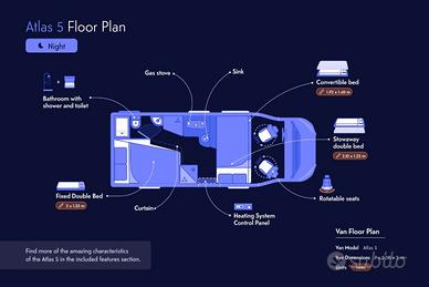 Abbiamo opzioni di credito al consumo flessibili per acquisti facili e senza stress! Il camper Atlas è la scelta perfetta per i viaggiatori che cercano spazio, comfort e un'esperienza simile a quella di casa propria sulla strada. Che tu stia pianificando un viaggio a lungo raggio o una fuga accogliente nel fine settimana, questo camper ha tutto ciò di cui hai bisogno! Garanzia e rimborso garantito 1 anno di garanzia [?] Soddisfazione garantita! Provalo per 14 giorni e, se non sei soddisfatto, ti rimborseremo il denaro! Ispezione aggiornata e pronto per mettersi in viaggio! Cosa rende speciale questo camper? Spazioso e confortevole: con una lunghezza di 699 cm e un'altezza di 294 cm, offre uno spazio abitativo generoso. Potente ed efficiente nei consumi: motore diesel 2.3 Mjet, 120 CV, cambio manuale e classe di emissioni Euro 6. Perfetto per 4 persone: dotato di 4 posti letto e 2 letti, è l'ideale per famiglie o piccoli gruppi. Completamente attrezzato per il comfort: dispone di riscaldamento a gas, riscaldamento ausiliario, climatizzazione e WC con acqua calda. Sicuro e protetto - Dotato di ABS, ESP, servosterzo e monitoraggio della pressione dei pneumatici. Provalo prima - Non sei sicuro che sia quello giusto per te? Puoi noleggiare il camper per tutti i giorni che desideri per familiarizzare con esso e assicurarti che sia perfetto per i tuoi viaggi. Inizia il tuo viaggio! Il camper Atlas è molto richiesto! Non perdere l'occasione: prenota una visita e rendilo tuo oggi stesso. Contattaci subito per vedere il nostro stock completo! Visita il nostro sito web all'indirizzo https://indiecampers.it/camper-usato/search?country=Italy MTK VY 751