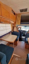 camper mansardato 7 posti letto di cui 2 matrimoniali 1 singolo 2 a castello nel lato posteriore, pannello solare per ricaricare le batterie abitacolo e motore,3 serbatoi acqua potabile da 70 litri l'uno, stufa a gas, inverter per trasformare la corrente da 12V a 220V,porta biciclette fino ad un massimo di 4 bici, frigorifero trivalente funzionamento a 12V-220V ed a gas, tenda esterna da 4 metri x 3metri, tavolino da campeggio,4 sedie. coperte lenzuola su richiesta.