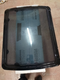 Vendo finestra apertura a compasso grigia serigrafata nera con bordatura nera bombata lateralmente con cerniera incassata misure 52x70