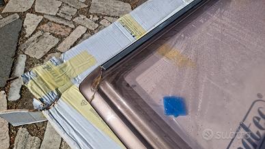 Vendo finestre usate Polyplastic Roxite colore bronzo, misura 1440x600 montavano su Granduca 67 anno 2003. Una presenta gli angoli superiori mancanti di uno e l'altro leggermente lesionato ( come si vede nelle prime foto) con crinatura a ragnatela nella parte centrale. L'altra è più rovinata (riparabile con un po' di manualità) con angoli incollati, lesione nella parte vicino al braccetto destro (è entrata acqua ed è appannata) e crinatura a ragnatela nella parte centrale.