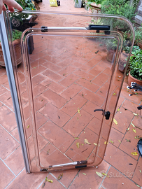Vendo finestra originale per roulotte Pioneer Louisiana del 1985, in buone condizioni. Misure: 96,5 × 53 cm. Apertura manuale con movimento a compasso verso l'esterno. Ideale per ricambio o ristrutturazione roulotte. Presenta qualche graffio dovuto all'etá, ma pistoncini funzionanti.