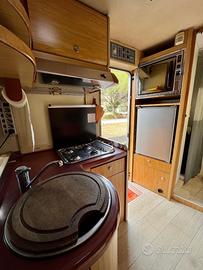 Cabina interna: 7 posti letto comodissimi, 6 posti viaggio a sedere, forno a gas, piano cottura a quattro fuochi, turbo ventola centrale per raffreddamento e aspirazione.