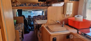 Il camper è dotato di un due tavolini, uno di piccole e uno di grandi dimensioni, che diventano rispettivamente un letto piccolo e un letto da una pizza e mezzo (una doppia dinetta); altri tre letti di cui un letto a castello e un letto matrimoniale posto sopra il guidatore.