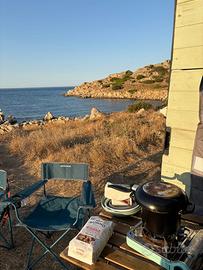 Vendo furgone camperizzato Ford Transit del 2014 con 185 mila km. Furgone camperizzato da me e da mio papà Acquistato nel 2020 Delilah, il nome che ho dato al mio furgoncino é sempre stata libera e selvaggia Comoda nel poter posteggiare dove si vuole quando si vuole Niente polemiche , non è omologato camper e il letto e la cucina NON sono amovibili. Mi hanno fermato un paio di volte ma non mi hanno mai detto niente se non ricevere complimenti per il mezzo (sia carabinieri che polizia locale). Pavimento con parquet vero, l’intero automezzo é stato coibentato con lana di roccia e sughero lateralmente e per quanto riguarda il tetto e il pavimento con pannelli in pvc. Ricoperto da perlinato in legno per estetica. Riscaldamento con cinebasto che va con un serbatoio di benzina posto lateralmente con la propria anta con una calamita. Nella cucina (acquistata su misura da Ikea) é presente mobiletto con due cassetti per posate e bicchieri, nelle ante del mobile sono presenti due taniche da 25 litri per carico e scarico dell’acqua del rubinetto, il sistema di pompaggio é alimentato da una seconda batteria cui è collegato anche impianto di illluminazione (strisce led) e una ghiacciaia che però non ho mai utilizzato. Il letto che aperto é di una piazza e mezza, quindi in due comodissimo, si accorcia diventando un comodo divano. Sotto al letto ampio spazio per tutto quello che è necessario, sia wc, sia contenitore per vestiti e provviste che spazio per il tavolino pieghevole. La seconda batteria si ricarica grazie ad un switch collegato con la batteria principale che grazie all’alternatore carica la batteria servizio. Revisionato regolarmente, ultima aprile 2026 Per qualsiasi info contattatemi Vendo con tutto allestimento, piatti bicchieri, ex chimico tende oscuranti, portaoggetti all’interno dei mobili a 10.000€ con possibilità di vederlo e possibilità di contrattazione Zona Milano e dintorni