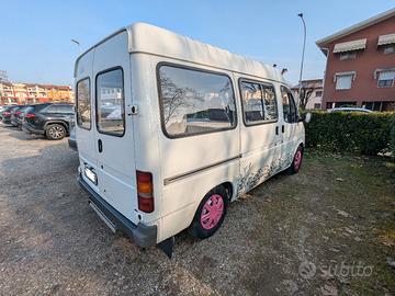 Vendo per totale inutilizzo ford transit TETTO ALTO del 1990 benzina metano 9 posti autovettura con tutte le agevolazioni di un auto d'epoca. Revisione valida fino 01\2028, 3 bombole bombole scadenza 12\2029 2 bombole scadenza 07\2026(spesa irrisoria per revisionarle). FURGONE Camperizzato molto bene come si può evincere dalle foto, ottime condizioni, moquette originale mai calpestata, posseggo le 2 file di sedili per riportarlo pulmino 9 posti(conservati dentro casa, non in garage) Doppia batteria separata, Frigo 12v con compressore, fornello e lavello inox, taniche da 60l d'acqua e letto con doghe in legno. Tutto ben tenuto, ottimo anche da parcheggiare in quanto occupa lo spazio di una station wagon e si può sostare dove c'è il divieto camper in quanto appunto autovettura. Può circolare con i blocchi del traffico a differenza dei furgoni diesel. Solo gente seria e intenzionata all acquisto, no collezionisti di foto e perditempo Grazie. L ARMADIETTO NON È UNA DOCCIA O UN WC, È UN ARMADIETTO DOVE CI SONO LE TANICHE E SI PUÒ METTERE UN PORTAPOTTI ecc