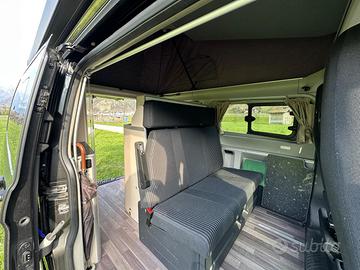 Vendo van compatto e versatile allestito Westfalia, utilizzabile sia come camper che per uso quotidiano. Omologato 5 posti e 2 letti - letto matrimoniale inferiore ribaltando il divanetto e letto matrimoniale superiore nel tetto a soffietto. Zona pranzo con tavolino a scomparsa allungabile. Dotato di cucina funzionale con due fuochi, frigo, lavabo e dispensa. Equipaggiato con doccia esterna. Sia il lavabo sia il doccino esterno sono dotati di acqua fredda e calda. Tendalino esterno. Porta bici. Sistema di riscaldamento a webasto. Dometic wc portatile alloggiato in apposito spazio. In dotazione oscuranti per parabrezza e finestrini lato guida e passeggiero. Dotato anche di copertura esterna per clima rigido.