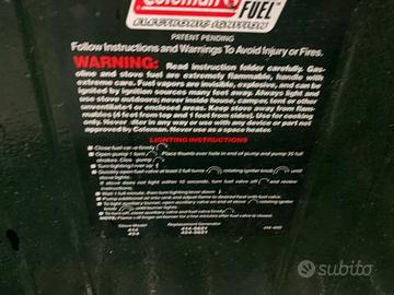 Vendo potente doppio fuoco ? della Coleman Americano funziona sia gas che benzina e frigo portatile professionale Della Waeco anche questo usato poco , molto potente , funziona sia gas che 220 e 12 volt . Pagato 600 eu usato pochissimo.