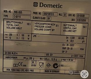 Vendo frigorifero Trivalente (12v, 220v, gas) Dometic RMD8505 in ottimo stato.