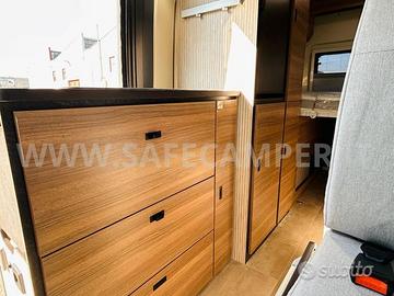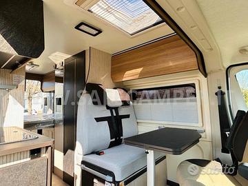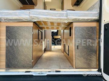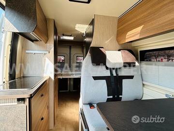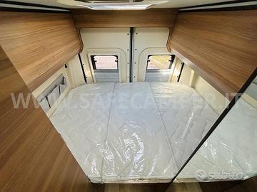 Prezzo di Listino Euro 52.992 in promo Primavera a Euro 49.500 su numero limitato di Van in produzione. Versione Base. Ideale per la coppia Letto matrimoniale in coda Bagno in termoformato con lavello in acciaio e ampio mobiletto sottostante Wc chimico con cassetta da 19 litri Doccia esterna di serie Plissettati in cabina Dometic Frigorifero a colonna standard a 96 Litri compressore Optional da 141 Litri Pratico armadio per giacche e camicie con sottostanti armadietti per ulteriore stivaggio Comoda suddivisione della zona cucina con tre cassettoni e pensile per olio e aceto,sale e pasta Letto aggiuntivo dinette incluso Ampia superficie del tetto libera per installazione pannelli solari o tetto a soffietto Lunghezza 5,998 Altezza 2,650 Larghezza 2,050 Mt Totale 4 Viaggio 2+1 letti Meccanica Fiat 2.2 140 cv Euro 6.Final