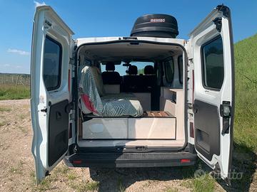 Versione: 1.6 TwinTurbo MJet 125 cv 6Posti N1 camperizzato con attualmente un divano costruito con struttura regolabile che si apre a letto matrimoniale e vari scompartimenti. Ha una seconda batteria di servizio, prese elettriche e una lampadina per illuminare. Ha impianto di riscaldamento e condizionamento. Ha un doccino collegato ad un boccione d'acqua da 100litri nella parte posteriore.