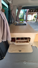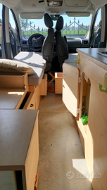 Vendo Furgone Van camperizzato artigianalmente in modo professionale, in 2 ore smontando i mobili ritorna furgone da 8 comodi posti e viceversa. In versione Van dispone di 60 litri di acqua con lavello e rubinetto elettrico utilizzabile anche come doccia, 30 litri di recupero acque grigie, toilette chimica.Gancio di traino con portabici e webasto. Il motore è 2000 diesel cambio automatico 160 CV, 15 km con un litro, disponibile x altre info e foto.. I mobili e gli impianti sono amovibili come prescrive la legge per un veicolo multiuso.. È un mezzo difficile da trovare con queste caratteristiche..