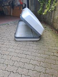 Vendo Gavone Top box S-class da ca 600 litri di dimensioni ca 1,85 metri per ca 90 cm per ca 40 cm ed una capacita' di circa 600 litri. Rinforzato internamente tramite staffe di acciaio inossidabile e dotato di molle ad aria per l'allineamento alla chiusura perfettamente funzionanti. Dotato di chiavi per la chiusura e staffe per il fissaggio al veicolo. Il box presenta delle riparazioni, eseguite internamente , ai lati evidenziate in foto