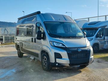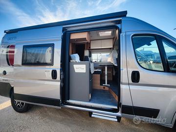 SB Camper propone splendido GiottiVan 60T compatto ([?]5,99 m) ideale per coppie o piccoli nuclei che vogliono un veicolo maneggevole ma ben equipaggiato. Layout pratico con zona giorno funzionale, cucina ergonomica e bagno completo; letto fisso/trasversale posteriore (verificare l'allestimento) + possibilità 3° posto letto aggiuntivo. Perfetto per weekend e vacanze, comodo in città e in parcheggi stretti. Caratteristiche: Modello: Giottiline GiottiVan 60T Tipologia: campervan van Lunghezza: 599 cm Larghezza: 205 cm Altezza: 265 cm Motore: Peugeot 2.2 140 CV Posti omologati: 4 Posti letto: 3 (letto fisso trasversale + eventuale letto aggiuntivo) Riscaldamento: riscaldamento Truma diesel Colore esterno: Bianco Prezzo mezzo in esposizione: 58.000 F.F