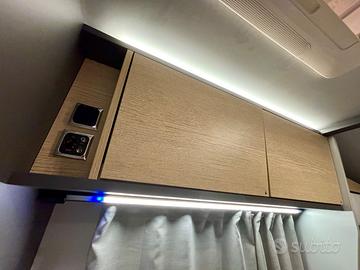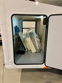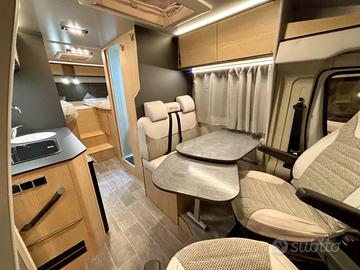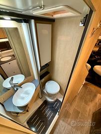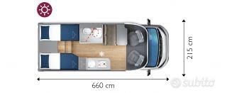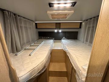 --veicolo compatto, dalla larghezza contenuta, dotato di letti gemelli posteriori e bagno vario, riscaldamento Combi Diesel e serbatoio di recupero coibentato