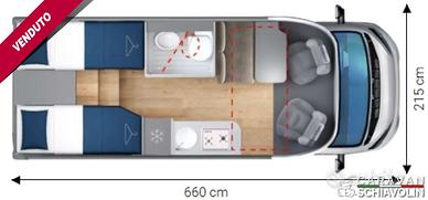 Chilometraggio: Condizioni: nuovo Immatricolazione: Tipologia: Camper - Parzialmente integrato Carburante: Diesel Tipo di cambio: Automatico Letto basculante anteriore € 1.000,00Truma Combi 4000 Diesel € 610,00DI SERIE NELLA VERSIONE PREMIERE EDITION COMPACT ; Cambio automatico 8 marce, Radio con schermo da 9'' (AppleCarPlay e AndroidAuto), Oscuranti plissettati in cabina, Coperchio lavello cucina, Duocontrol, Tappeto moquette cellula, tappeto moquette cabina). PACK PRIVILEGE COMPACT (Paraurti verniciato, fari fendinebbia, Radio con schermo da 6,8" AppleCarPlay e AndroidAuto, Retrocamera HD, Foderine cabina in tessuto coordinato, Porta a 2 punti XL con finestra e chiusura centralizzata)PACK SPORT (Cerchi in lega 16", Volante e pomello cambio in pelle, inserti del volante in alluminio)DI SERIE sui COMPACT STANDARD : Telaio da 35Qli. 140cv, Climatizzatore cabina, Pneumatic M+S 4 Stagioni,Airbag guidatore e passeggero, Esp, Traction Plus, Hill holder, Hill descent, Start & Stop, Cruise control, Predisposizione radio Dab, Specchietti retrovisori elettrici e riscaldati, Cambio manuale 6 marce, Serbatoio acque grigie riscaldato, Comando Truma CP Plus, Gradino esterno elettrico, Attacchi isofix, Cerchi da 15 in acciaio, Porta cellula XL con un punto di chiusura, KIT Oscurante isolante interno cabina, Finestre con telaio a filo carrozzeria, Predisposizione pannello solare, Predisposizione antenna tv digitale/sat, Zanzariera porta cellula, Luce esterna a led, Tapezzeria di serie DANTE e a richiesta senza sovrapprezzo RAFFAELLO e MICHELANGELO. n.b. altro optional a richiesta = Letto supplementare dinette PUNTI DI FORZA= Il Compact CX66 è il profilato che unisce compattezza e abitabilità, con i suoi 6,60 metri di lunghezza, offre letti gemelli posteriori unificabili, un comodo bagno con doccia a volume variabile e una zona giorno funzionale con ampia dinette. Il letto basculante anteriore consente di ospitare fino a cinque persone, r