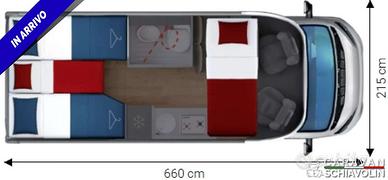 Letto basculante anteriore € 1.000,00Truma Combi 4000 Diesel € 610,00DI SERIE NELLA VERSIONE PREMIERE EDITION COMPACT ; Cambio automatico 8 marce, Radio con schermo da 9'' (AppleCarPlay e AndroidAuto), Oscuranti plissettati in cabina, Coperchio lavello cucina, Duocontrol, Tappeto moquette cellula, tappeto moquette cabina). PACK PRIVILEGE COMPACT (Paraurti verniciato, fari fendinebbia, Radio con schermo da 6,8" AppleCarPlay e AndroidAuto, Retrocamera HD, Foderine cabina in tessuto coordinato, Porta a 2 punti XL con finestra e chiusura centralizzata)PACK SPORT (Cerchi in lega 16", Volante e pomello cambio in pelle, inserti del volante in alluminio)DI SERIE sui COMPACT STANDARD : Telaio da 35Qli. 140cv, Climatizzatore cabina, Pneumatic M+S 4 Stagioni,Airbag guidatore e passeggero, Esp, Traction Plus, Hill holder, Hill descent, Start & Stop, Cruise control, Predisposizione radio Dab, Specchietti retrovisori elettrici e riscaldati, Cambio manuale 6 marce, Serbatoio acque grigie riscaldato, Comando Truma CP Plus, Gradino esterno elettrico, Attacchi isofix, Cerchi da 15 in acciaio, Porta cellula XL con un punto di chiusura, KIT Oscurante isolante interno cabina, Finestre con telaio a filo carrozzeria, Predisposizione pannello solare, Predisposizione antenna tv digitale/sat, Zanzariera porta cellula, Luce esterna a led, Tapezzeria di serie DANTE e a richiesta senza sovrapprezzo RAFFAELLO e MICHELANGELO. n.b. altro optional a richiesta = Letto supplementare dinette PUNTI DI FORZA= Il Compact CX66 è il profilato che unisce compattezza e abitabilità, con i suoi 6,60 metri di lunghezza, offre letti gemelli posteriori unificabili, un comodo bagno con doccia a volume variabile e una zona giorno funzionale con ampia dinette. Il letto basculante anteriore consente di ospitare fino a cinque persone, r