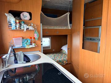 Vendo per scarso utilizzo splendido camper mansardato Giottiline su meccanica Fiat Ducato del 2008, con soli 55.000 km. Veicolo in ottime condizioni generali, sempre mantenuto con cura e pronto all’uso. Caratteristiche principali: * Omologato 5 posti viaggio e 7 posti letto * Motore 3.000 da 160 CV, molto affidabile e con ottima coppia (distribuzione a catena) * Meccanica in perfetto stato, appena revisionato * Pneumatici al 50% * Controlli periodici contro infiltrazioni sempre eseguiti (fatture disponibili) Condizioni carrozzeria: Presenti alcuni segni del tempo non strutturali (graffi e piccole imperfezioni di vernice), che non compromettono l’utilizzo del mezzo. Disposizione interna ideale per famiglie: * Ampio letto matrimoniale in mansarda * Due letti a castello longitudinali di generose dimensioni * Doppia dinette trasformabile in ulteriori posti letto * Bagno spazioso con doccia separata * Grande gavone posteriore Dotazioni e accessori: * Portabici Fiamma 4 posti * Tendalino Fiamma * Turbovent * Finestre complete di zanzariere e oscuranti * Porta ingresso con zanzariera * Frigorifero trivalente di grandi dimensioni con freezer separato * Doppio serbatoio acqua * Cucina a tre fuochi con cappa aspirante * Stufa Truma * Pannello solare da 100W Camper spazioso, funzionale e perfetto per viaggi in famiglia o lunghi periodi in autonomia.