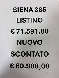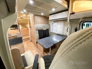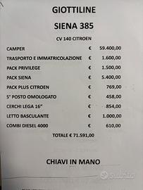 -Giottiline Camper Siena 385 , semintegrale 699 cm, dotato di letti gemelli,maxi basculante anteriore, gavone porta moto posteriore, ideale per la coppia ma anche per la famiglia numerosa,questo veicolo presenta una delle piante piu' classiche e piu' vendute del marchio toscano