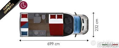 6° Posto aggiuntivo omologato e letto supplementare in dinette € 458,00Porta ingresso 2 punti con finestra e chiusura centralizzata € 600,00DI SERIE su questo veicolo: Airbag passeggero, Climatizzatore cabina automatico (Ford), Esp, Traction Plus, Hill holder e Hill descent, Start & Stop, Cruise control, Cerchi in acciaio da 15 (Stellantis), Cerchi da 16 in acciaio (Ford), Radio 12" con Apple Carplay e Android Auto(Ford), Predisposizione radio con comandi al volante, Volante in pelle (Ford), Sensori parcheggio anteriori (Ford), Drl led (Ford), Freno a mano elettrico(Ford), Sospensioni rinforzate (Stellantis) Fendinebbia, Paraurti verniciato in tinta, Maxi oblò skyview (su semintegrali), Porta cellula xl, Retrocamera, Foderine cabina in tinta, Serbatoio acque grigie riscaldato, Zanzariera porta cellula, Luce esterna a led, Comando Truma CP Plus con pred. I-Net, Rear style con fari a led, Attacchi isofix (non disponibili con dinette face to face) CAMPER SEMINTEGRALE CON LETTI A CASTELLO IN CODA, LETTO BASCULANTE MATRIMONIALE SOPRA DINETTE, 6 POSTI OMOLOGATI, IDEALE PER FAMIGLIE ITINERANTIIN PRONTA CONSEGNAIN OFFERTA