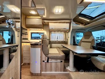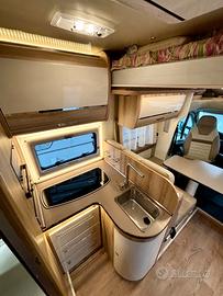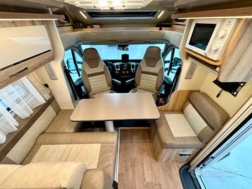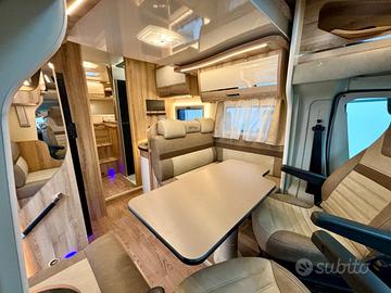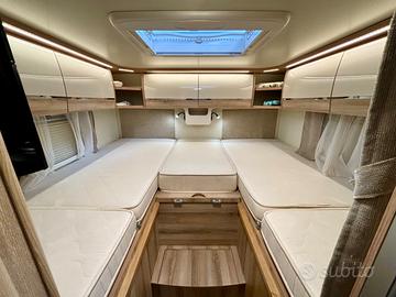 --Camper semintegrale con letti gemelli 699 cm, si tratta della miglior pianta presente sul mercato per comodita' interna e compattezza esterna, veicolo dotato di 5 posti omologati e 6 posti letto con basculante, riscaldamento Truma Combi Diesel