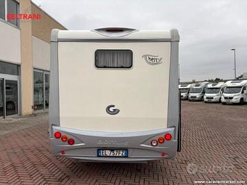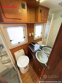 Il Giottiline Therry T45 mansardato 2012 è la soluzione ideale per famiglie e coppie che desiderano spazio, comodità e praticità. Offre 5 posti omologati in viaggio e 4+1 posti letto, con letto matrimoniale trasversale posteriore e un ampio letto in mansarda, perfetto per garantire riposo e comodità.