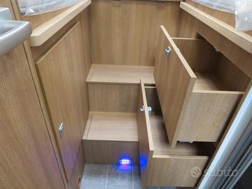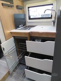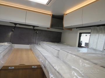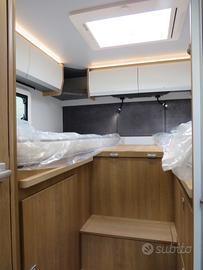 Completo di:Clima caBina manuale,Pneumatici M+S 4 stagioni,Doppio airbag,ESP+Tracion+Hill Holder+Hill Descent+Start&Stop,Cruise control,Predisposizione Radio DAB,specchietti retrovisori elettrici e riscaldati,cambio manuale a 6 marce,Serbatoio acque grige riscaldato,Comando Truma CP+,luci posteriori al led,Attacchi isofix Cerchi di 15",Porta cellula Xl a 2 punti di chiusura,oscurante cabina standard,Maxi' SkyView apribile in vetro a doppia camera,predisposizione pannello solare,Predisposizione Tv Digitale/Sat,Zanzariera porta cellula,Luce esterna al led,Paraurti vernixciato in tinta+fendinebbia,Fodere cabina in tinta,Coperchioa lavello cucina,Materasso Memory Form,