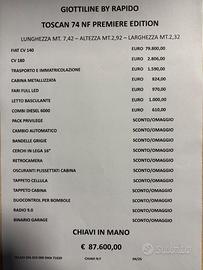 --Giottiline Toscan 74 NF, FIAT,180 cv automatico, FULL LED, veicolo veramente fantastico, dotato di letto nautico e maxi gavone posteriore, dinette face to face e tanto altro, le foto si commentano da sole!
