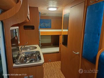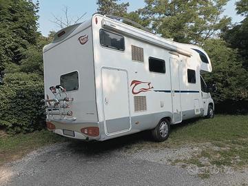 Vendo camper mansardato ducato 2300cc 130cv, Km 37900, del 2008 euro4, Lunghezza : 7,28 m . Stato ottimo, sempre rimessato in garage chiuso. Carreggiata posteriore allargataABS, climatizzatore, vetri elettrici, specchi esterni elettrici, chiusura centralizzata, sedili con braccioli, 5 posti omologati. Garage, Pensile con TV 15", lettore CD. Antenna satellitare completamente automatica. Scaletta mansarda con gradini maggiorati Pannello fotovoltaico, centralina di carica batteria servizi e motore. Antifurto volumetrico. Sensore tri gas. Tendalino. Cruise control. Radio con display e retrocamera. Crick e ruota di scorta. Nr. 2 cassette WC THETFORD lt. 17 Faretti Illuminazione led Portabici 3 posti
