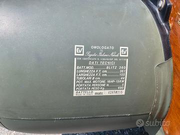 Gommone eurovinil MT 3.60 portata 5 persone con motore Yamaha 15 CV paiolato in legno e chiglia gonfiabile particolarmente adatto ad essere trasportato su camper in quanto poco ingombrante e leggero. Sempre rimessato in box auto senza nessuna piega . Vendo compreso di grandi ruote di alaggio sacca nautica con tutte le dotazioni per la navigazione, 4 giubbotti di salvataggio nuovi, scaletta, remi, anulare, ancora , ecc. Allego anche gonfiatore elettrico 12 volt con possibilità di impostare la pressione di gonfiaggio . Il tutto tenuto perfettamente