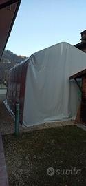 Vendo hangar usato per rirovero camper. Telone copertura nuovo. Telaio tubi ferro zincato. Misure 7,20 mt lunghezza, largo 3,40 mt ed alto 3,20 al culmine. Usato per parcheggio motohome rialzato e con condizionatore a tetto.