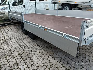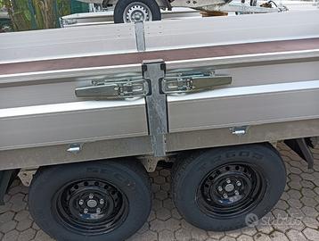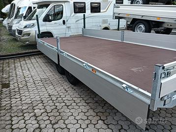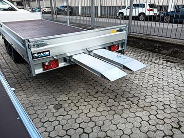 HAPERT AZURE 505 X 200, 2 assi con freni, telaio con balestre e ammortizzatori, portata complessiva kg.3490/3400/3000/2700, sponde in alluminio h.cm.30 tutte apribili singolarmente, piantoni angolari e centrali estraibili, ganci fissaggio carico a scomparsa nel telaio tenuta kg.1000, cad , telaio con balestre e ammortizzatori, coppia di rampe di carico rinforzate portata kg.1790 cad. coppia piedini rinforzati girevoli, telascopici, PRONTA CONSEGNA