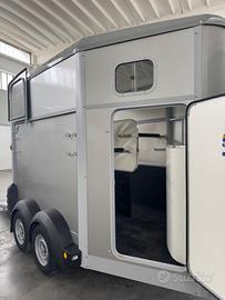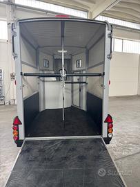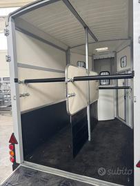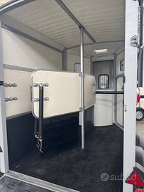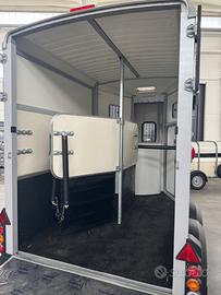 Ifor Williams HB506 - Rimorchio per cavalli (Horsebox) - Con selleria - Massa complessiva 2600 kg Ifor Williams HB506, il rimorchio per due cavalli professionale, robusto e confortevole. Ideale per il trasporto sicuro di due cavalli , con spazio ampio e design studiato per il benessere degli animali durante il viaggio. Dimensioni principali: * Interne: Lunghezza 3,16 m × Larghezza 1,67 m (Altezza interna circa 2,26 m) * Esterne: Lunghezza complessiva 4,30 m × Larghezza 2,13 m * Massa complessiva: 2600 kg * Portata utile: circa 1680 kg (tara circa 920 kg) Principali dotazioni: * Fanaleria LED di serie * Selleria (tack locker anteriore) * Partizione centrale removibile con breast e breeching bars regolabili * Rampa posteriore ribaltabile + porta laterale per facile accesso * Finestre laterali scorrevoli e ampia finestra di ispezione anteriore * Telaio zincato a caldo di altissima qualità * Sospensioni a balestre per massima stabilità * Ruota di scorta inclusa * Piano in alluminio * Ampia ventilazione e pannelli in alluminio ad alta resistenza Molto stabile su strada, facile da trainare e progettato per il massimo comfort dei cavalli. Possibilità di finanziamento Compass Nel nostro stabilimento a Forlì abbiamo più di 40 rimorchi Ifor Williams pronti consegna Visibile presso il nostro stabilimento a Forlì (Emilia-Romagna) a soli 5 minuti dal casello autostradale di Forlì. Perfetto per allevatori, centri ippici, proprietari di cavalli e appassionati. Rimorchi in pronta consegna Zona: Forlì (FC) - Emilia Romagna Contatti: Chiamami o scrivimi su WhatsApp al Visibile su appuntamento presso il nostro stabilimento. Ifor Williams = qualità leader europea dal 1958.