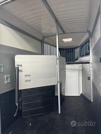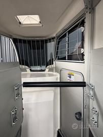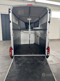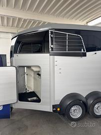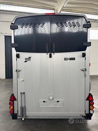 Ifor Williams HBX506 - Massa complessiva 2600 kg Ifor Williams HBX506, il rimorchio per due cavalli professionale, robusto e confortevole con caricamento classico. Ideale per il trasporto sicuro di due cavalli con spazio ampio e design studiato per il benessere degli animali durante il viaggio. Dimensioni principali: * Interne: Lunghezza 3,26 m × Larghezza 1,67 m (Altezza interna circa 2,26 m) * Esterne: Lunghezza complessiva 4,30 m × Larghezza 2,14 m * Massa complessiva: 2600 kg * Portata utile: circa 1735 kg (tara circa 865 kg) Principali dotazioni: * Fanaleria LED di serie * Caricamento in diagonale con partizione centrale removibile * Selleria * Rampa posteriore ribaltabile + porta laterale per facile accesso * Finestre laterali scorrevoli e ampia finestra di ispezione anteriore * Telaio zincato a caldo di altissima qualità * Sospensioni a balestre per massima stabilità * Ruota di scorta inclusa * Porta posteriore doppia apertura anche a libro * Fondo alluminio Possibilità di finanziamento Compass Nel nostro stabilimento a Forlì abbiamo più di 40 rimorchi Ifor Williams pronti consegna Visibile presso il nostro stabilimento a Forlì (Emilia-Romagna) a soli 5 minuti dal casello autostradale di Forlì. Perfetto per allevatori, centri ippici, proprietari di cavalli e appassionati. Zona: Forlì (FC) - Emilia Romagna Contatti: Chiamami o scrivimi su WhatsApp al Visibile su appuntamento presso il nostro stabilimento. Ifor Williams = qualità leader europea