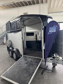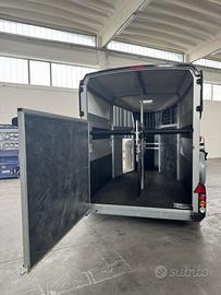 Ifor Williams HBX511 - Rimorchio per cavalli - Con selleria e porta doppia apertura posteriore- Massa complessiva 2700 kg Ifor Williams HBX511, il rimorchio per due cavalli professionale, robusto e confortevole. Ideale per il trasporto sicuro di due cavalli , con spazio ampio e design studiato per il benessere degli animali durante il viaggio. Dimensioni principali: * Interne: Lunghezza 3,63 m × Larghezza 1,79 m (Altezza interna circa 2,29 m) * Esterne: Lunghezza complessiva 4,67 m × Larghezza 2,27 m * Massa complessiva: 2700 kg * Portata utile: circa 1750 kg (tara circa 950 kg) Principali dotazioni: * Fanaleria LED di serie * Selleria (tack locker anteriore) * Porta doppia apertura (porta laterale + ampia apertura posteriore) * Partizione centrale removibile con breast e breeching bars regolabili * Rampa posteriore ribaltabile per facile accesso * Finestre laterali scorrevoli e ampia finestra di ispezione anteriore * Telaio zincato a caldo di altissima qualità * Sospensioni a balestre per massima stabilità * Ruota di scorta inclusa * Gancio bloccabile * Ampia ventilazione e pannelli in alluminio ad alta resistenza Molto stabile su strada, facile da trainare e progettato per il massimo comfort dei cavalli. Possibilità di finanziamento Compass Nel nostro stabilimento a Forlì abbiamo più di 40 rimorchi Ifor Williams pronti consegna Visibile presso il nostro stabilimento a Forlì (Emilia-Romagna) a soli 5 minuti dal casello autostradale di Forlì. Perfetto per allevatori, centri ippici, proprietari di cavalli e appassionati. Rimorchio in pronta consegna. Zona: Forlì (FC) - Emilia Romagna Contatti: Chiamami o scrivimi su WhatsApp al Visibile su appuntamento presso il nostro stabilimento. Ifor Williams = qualità leader europea dal 1958. Rimorchio professionale, sicuro, durevole e ottimizzato per il trasporto cavalli!