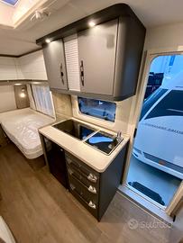 -Hobby On Tour 460 dl, caravan NUOVA, IN PRONTA CONSEGNA, ideale per la coppia che ama viaggiare agilmente, grazie alla sua larghezza contenuta di 220 CM!