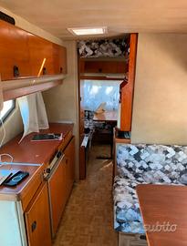 Vendo camper Hobby 600 dell'86, 160000 km. 4 posti letto e marcia. Gomme nuove, boiler acqua calda elettrico nuovo, stufa, cucina, porta biciclette. Tutto funzionante nessuna infiltrazione e pronto a partire